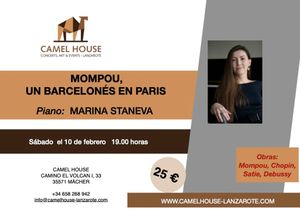 Marina ist auf Festivals in ganz Europa und im Vereinigten Königreich aufgetreten und in den wichtigsten Konzertsälen Londons – Wigmore Hall, Barbican Hall, der Milton Court Concert Hall, dem Royal Opera House und dem The Inner Temple. Sie hat Aufnahmen für Classic FM gemacht und nahm am “The First Global Granados Marathon” teil, der live aus der Milton Court Concert Hall übertragen wurde. Marina schloss ihre Master- und Advanced Diploma Degrees mit Auszeichnung ab, gefolgt von dem Junior Fellowship an der Guildhall School of Music and Drama in London, unterstützt vom Guildhall Trust. Bevor sie nach London zog, machte Marina ihren Bachelor-Abschluss an der Nationalen Akademie für Musik in Sofia, Bulgarien.